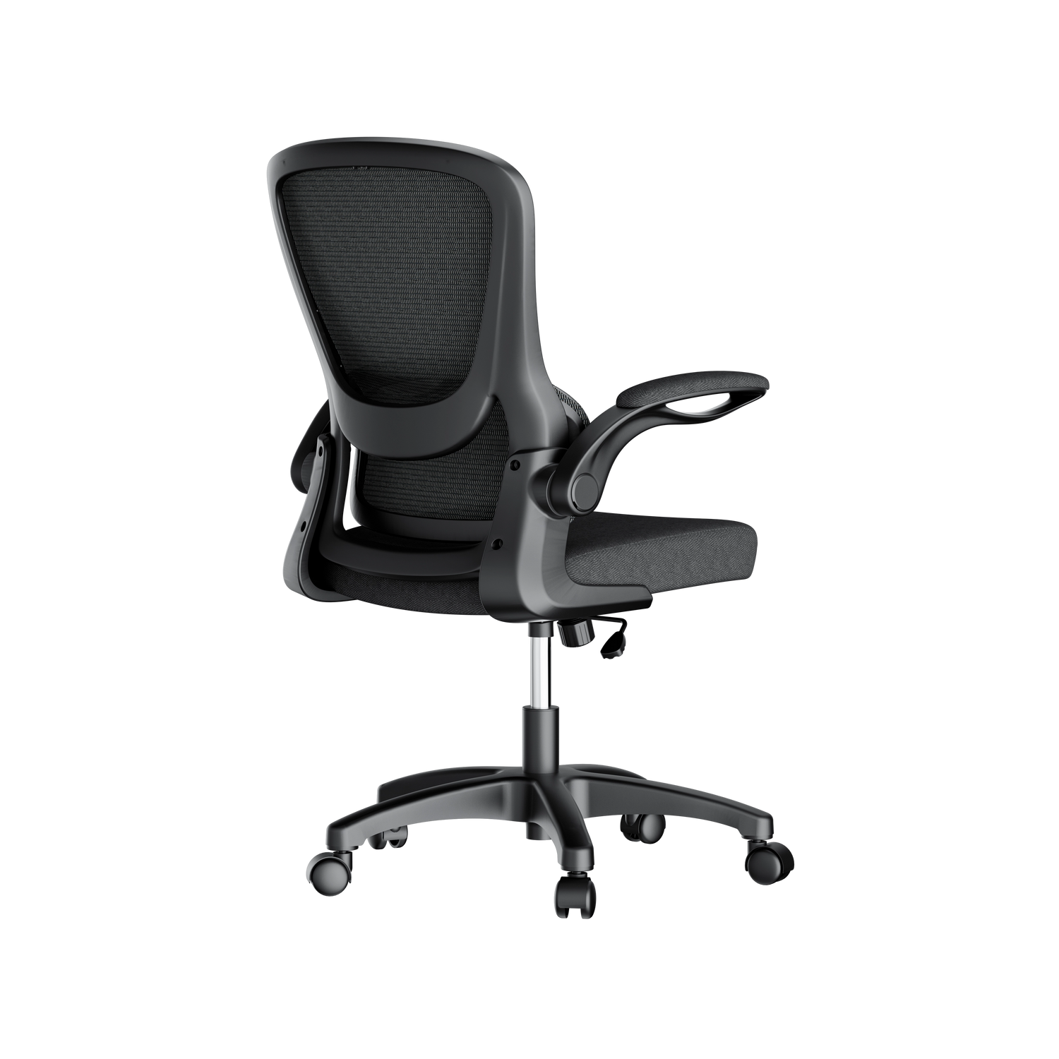 Flip-up arms tuck neatly under your desk.