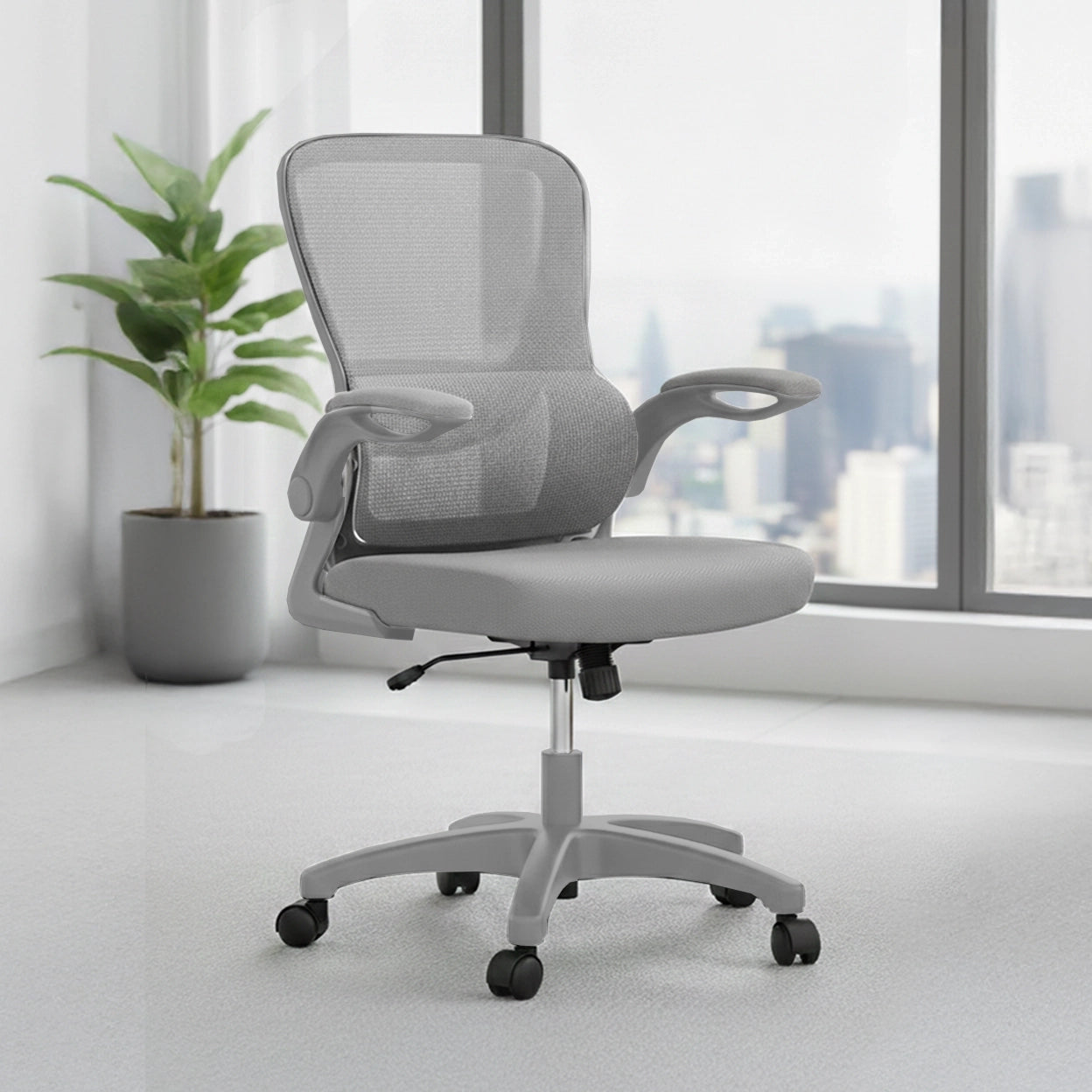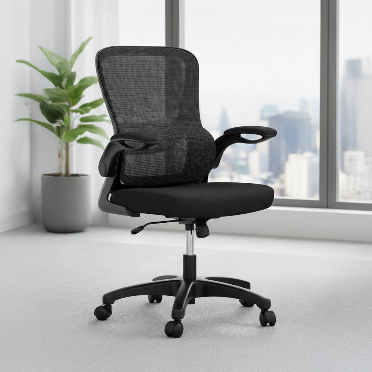 Made for focused work and everyday movement, this mid-back task chair delivers reliable comfort in a clean, simple design. Its breathable back and supportive seat help you stay comfortable throughout the day, while flip-up arms make it easy to pull in close or clear space when needed. With smooth height and tilt adjustment, steady support, and effortless mobility, this practical office chair works hard without getting in the way. Perfect for home offices, workstations, and collaborative spaces.