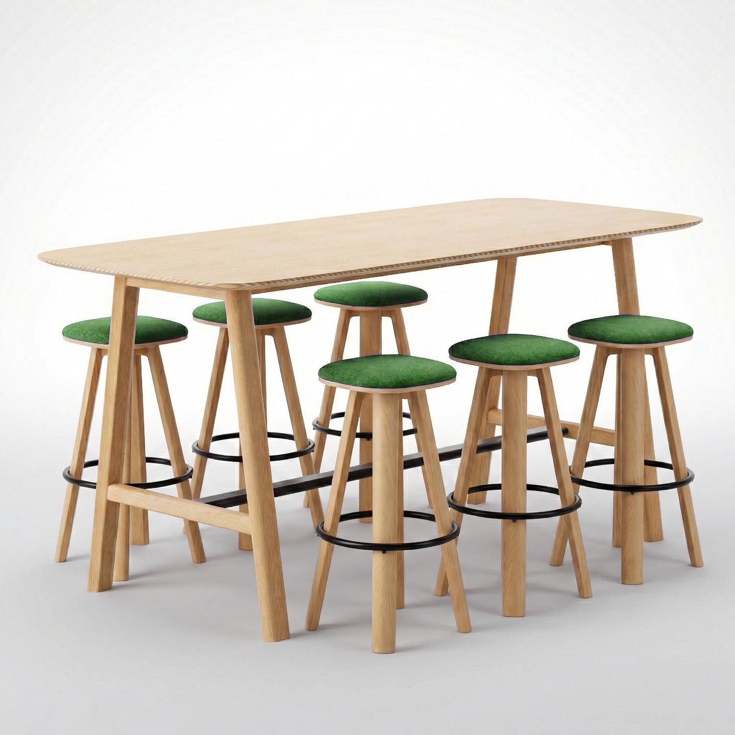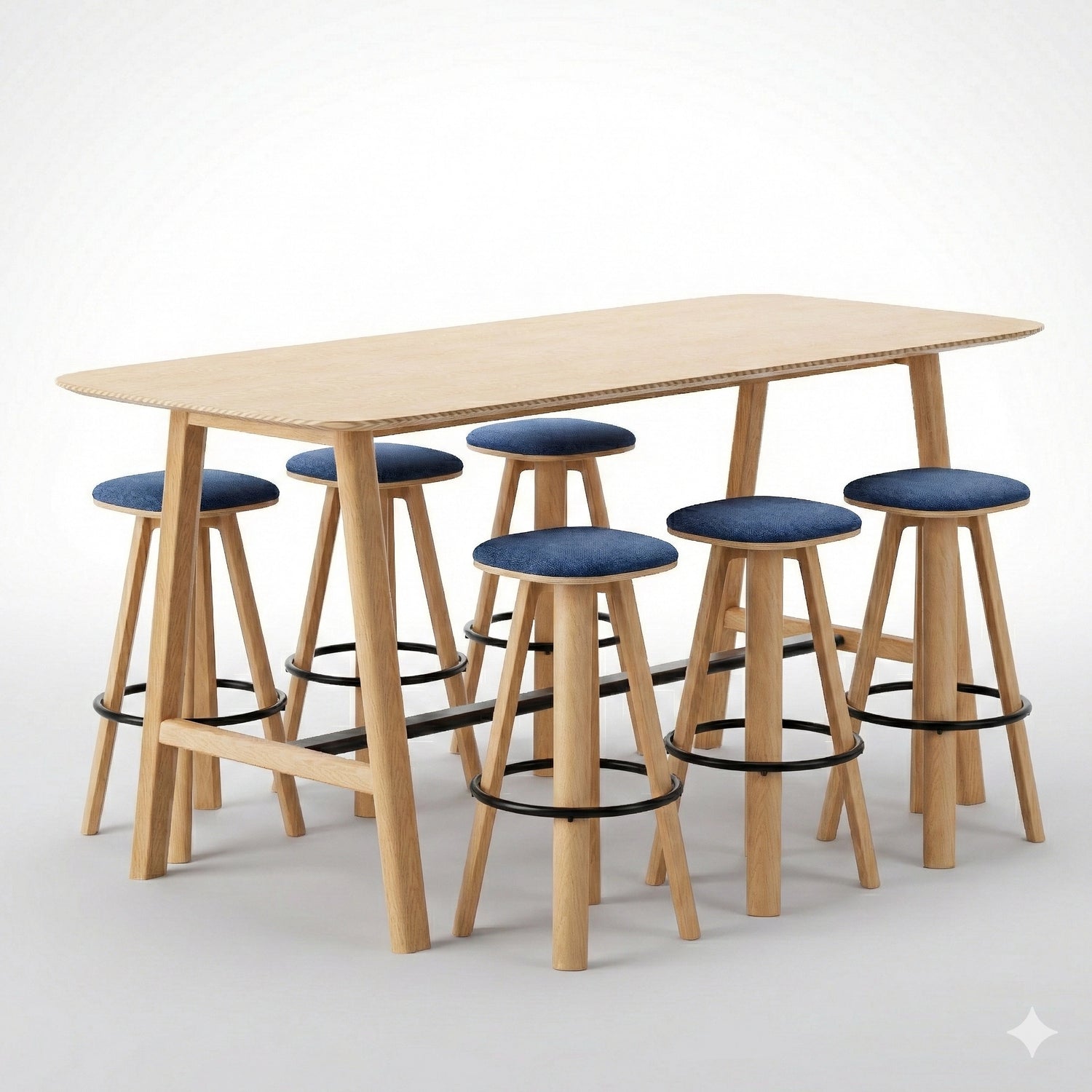 Classic Wood Wide High Table + 6 Round Top High Bar Stools (Bundle)